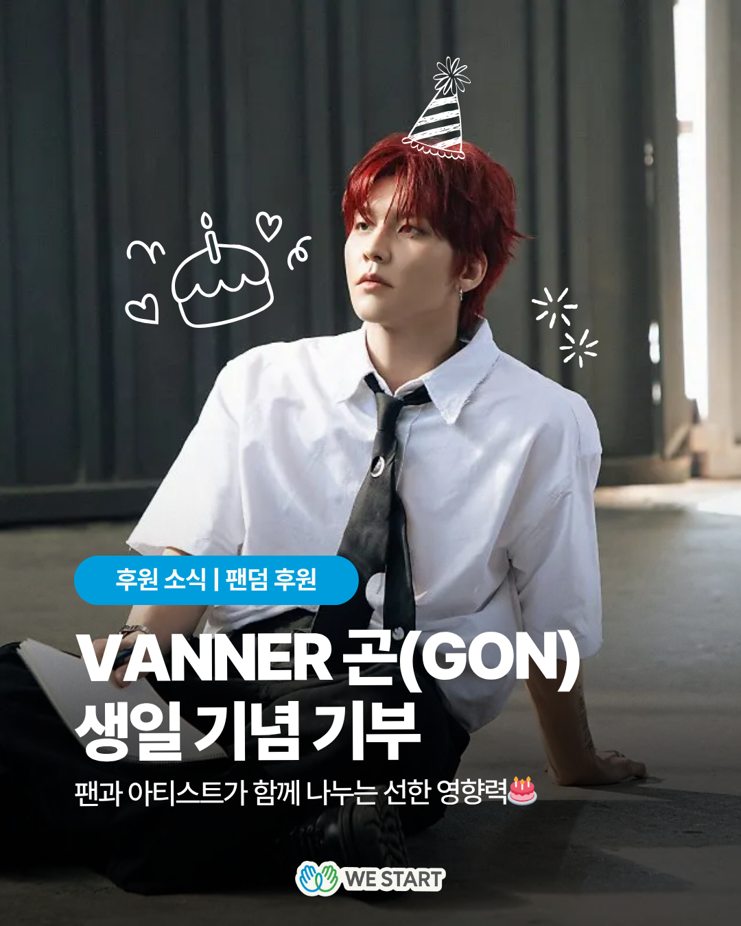 바로 2019년 데뷔한 실력파 아이돌 그룹 VANNER(배너)의 메인 래퍼이자 메인 댄서인 곤(GON)님의 생일을 기념하여 팬덤에서 위스타트에 소중한 후원금을 기부해 주셨다는 소식입니다!