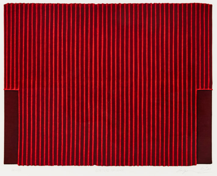 단색화의 거장 박서보의 ‘묘법 No.161231’ 판화 작품은 ‘자문밖 판화 컬렉션’ 중 한 점으로, 2021년 제작된 에디션 175개의 한정판이다. 박서보의 색채 묘법 시기를 대표하는 붉은색 화면이 특징적으로 구성되어 더욱 눈길을 끈다.