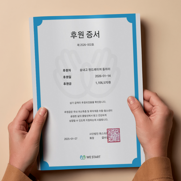 특히 2025년에는 자신들과 비슷한 또래의 청소년과 어린이들을 돕고 싶다는 의견이 많았고, 아이들이 환경 때문에 꿈을 포기하지 않도록 교육과 정서 지원을 통해 곁에서 함께하는 단체라는 점에 공감해 위스타트 후원을 결정하게 되었습니다.
