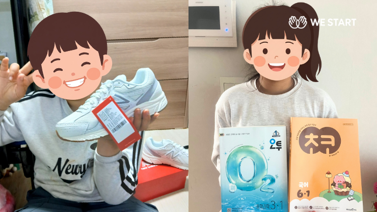 480여 명의 후원자님 덕분에 취약계층 아동·청소년 31명이 새학기에 필요한 의류, 신발, 학용품을 직접 고르고 준비할 수 있었습니다. 후원금은 전액 아이들에게 전달되었습니다. 함께해 주셔서 진심으로 감사드립니다.