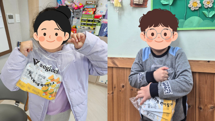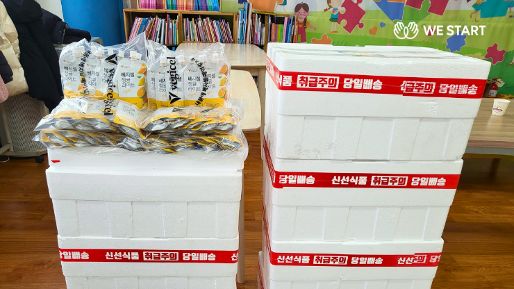 위스타트는 전달받은 음료를 두 가지 방식으로 아이들에게 연결했습니다. 기관 내 급식·간식 시간에 함께 마실 수 있도록 제공하고, 가정에서도 이어질 수 있도록 개별로 나눠 가져갈 수 있게 했습니다.